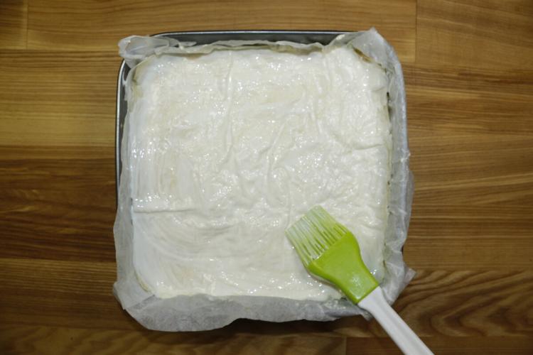 Далі знову — лаваш, масло, сир. І так, поки все не закінчиться. Зверху — ще один лист лаваша.