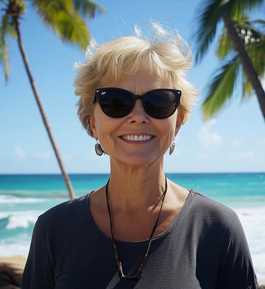 Новая публикация, сделанная час назад: Светлана Анатольевна с коктейлем на пляже, за её спиной — лазурное море и яркое турецкое солнце.