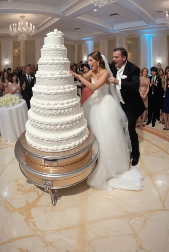 Когда мы подошли к свадебному торту, зал затих. Я взяла нож, улыбнулась гостям — и в этот момент мой муж неожиданно толкнул меня сзади. Я потеряла равновесие, упала прямо на торт, а потом — на пол.