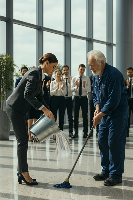 Переодевшись в уборщика, я тихо вошёл в собственную компанию и мгновенно увидел её истинное лицо. Но когда заместитель окатила меня грязной водой, я лишь сдержал ответ — и спустя полчаса уже стоял в переговорной, наблюдая, как сотрудники входят, не подозревая о надвигающемся шоке.