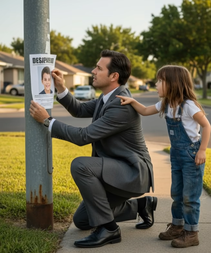 В то утро он снова поехал,  но на этот раз не  в элитные районы — туда, где облупленные стены и узкие улицы. Он клеил объявления дрожащими руками, словно извиняясь перед фотографией улыбающегося мальчика.