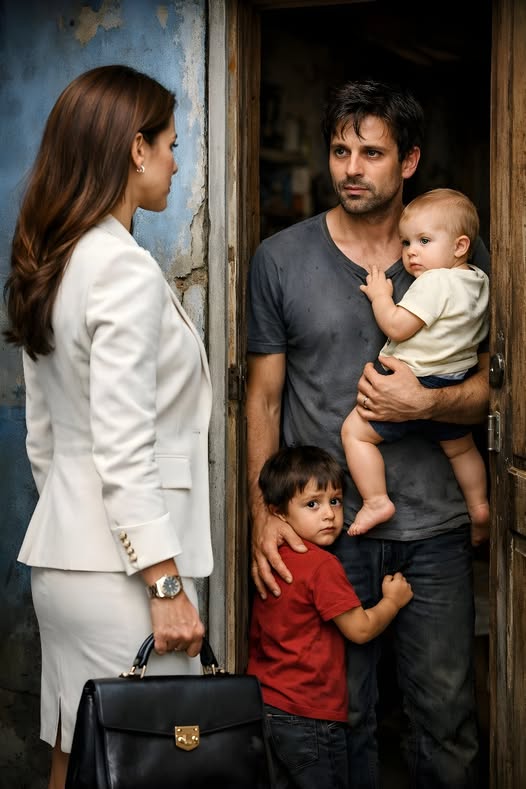 На пороге появился Карлос — но совсем не тот Карлос, которого Лаура привыкла видеть в офисе. Не аккуратный и «невидимый», а уставший, с тенью бессонных ночей под глазами. На нём была простая, поношенная футболка. В руках он бережно держал малыша, а к его ноге прижимался ещё один ребёнок, крепко цепляясь, будто боялся отпустить.
