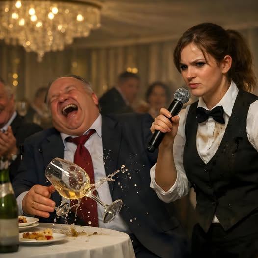Но напряжение копилось. Когда она принесла чистые бокалы, тонкий хрусталь тихо звякнул — рука дрогнула от усталости и внутреннего сжатия. И даже это мэр превратил в очередной «номер», громко комментируя, а его свита снова подхватила.