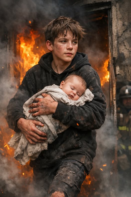 Через какое-то время из дыма показалась фигура. Он вышел, прижимая к груди младенца. Ребёнок плакал, но был жив. Парень кашлял от дыма, руки были обожжены, но он держался на ногах.