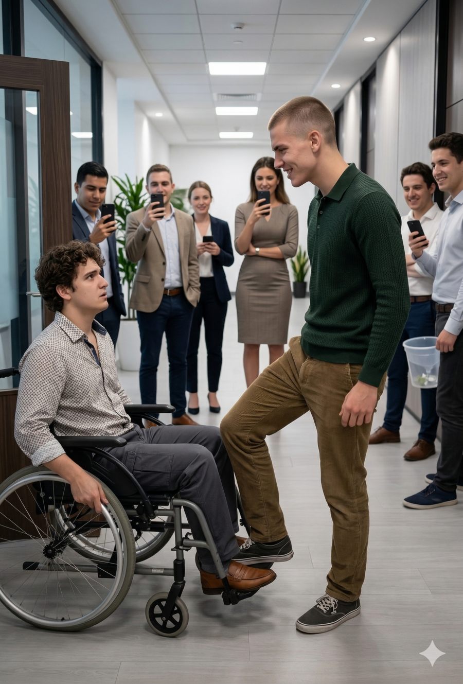 В коридоре повисла тишина. Алекс всё ещё сидел в своей коляске, мокрый, дрожащий, но впервые за долгое время вокруг него не было смеха.