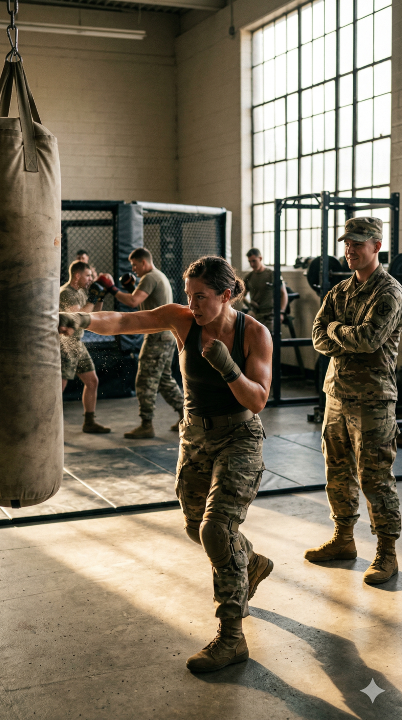В тот день она стояла у боксерской груши и спокойно отрабатывала удары. Движения были точные, без лишней суеты. Она не спешила, не пыталась кому-то что-то доказать — просто работала.